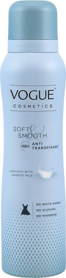 De Vogue Soft & Smooth Antiperspirant 150 ml biedt betrouwbare bescherming tegen transpiratie en lichaamsgeur met een zachte, verzorgende formule. Deze antiperspirant bevat milde ingrediënten die de huid kalmeren en irritaties helpen voorkomen. Dankzij de langdurige werking blijf je fris zonder witte strepen op kleding. Ideaal voor dagelijks gebruik als je online zoekt naar een effectieve en huidvriendelijke deodorant.